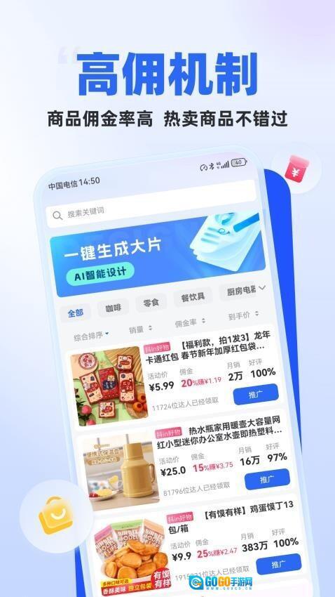 软件里的商品佣金比例相当高,通过在线挑选商品并进行推广,用户能够获得丰厚的佣金收益。