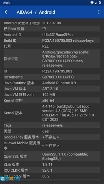 Dalvik属性、OpenGLES版本、CUDA/OpenCL设备清单、已安装应用及编解码器生成。