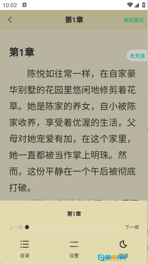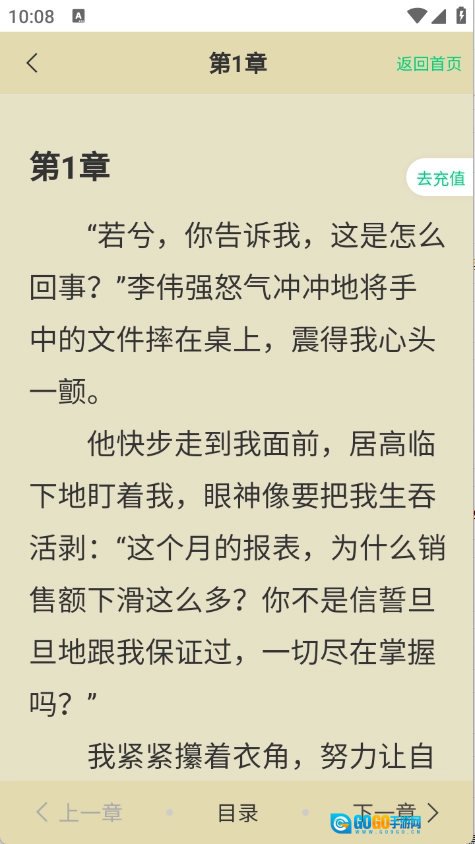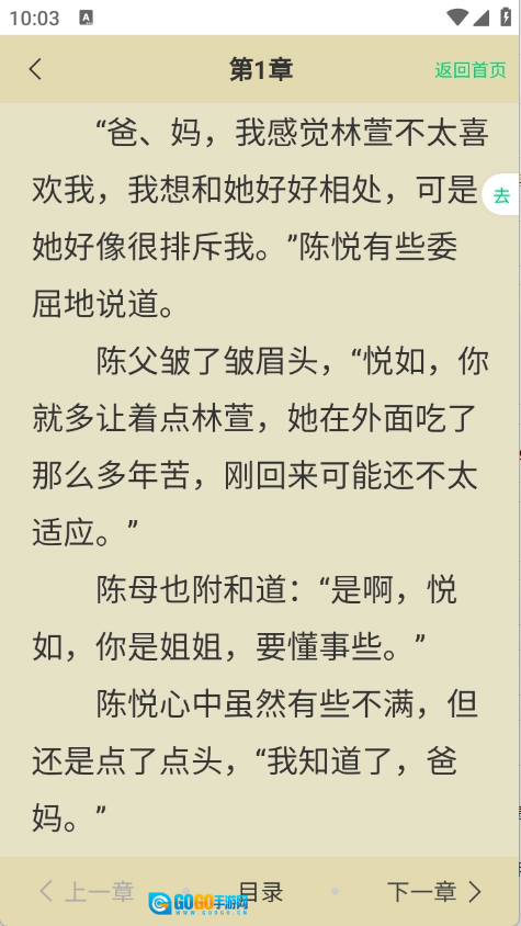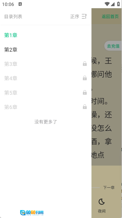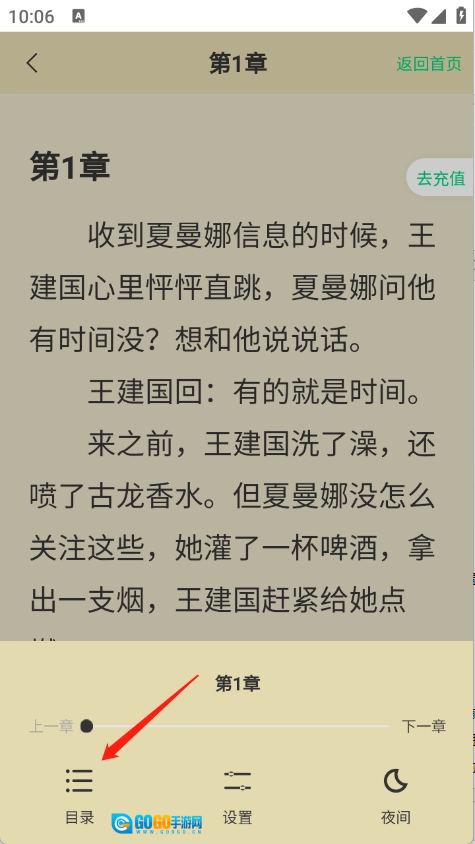 上下滑动屏幕找到并点开自己喜欢的小说资源后,就能进入阅读页面了。
