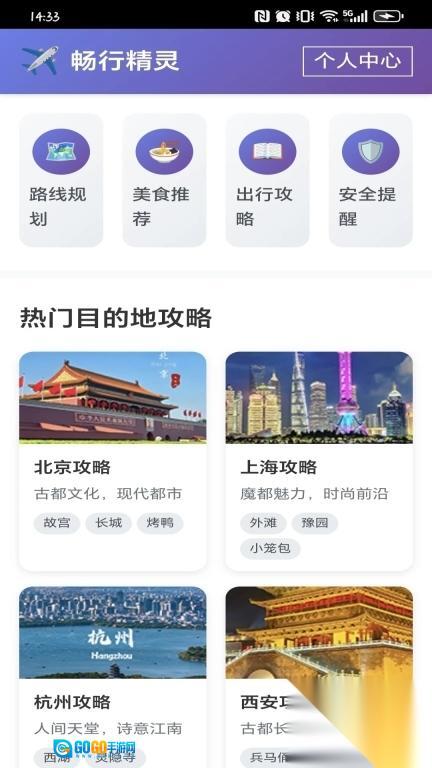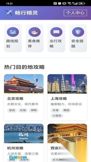 在首页就能查看路线规划、美食推荐、出行攻略、安全提醒,以及热门目的地攻略。