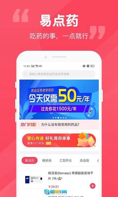 1、这款软件配备了专门适合老年人的常用药,像专门用于治疗高血压、高血脂、乙肝等慢性疾病的药品。