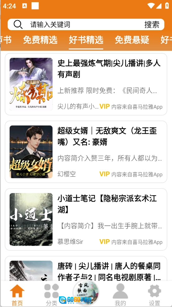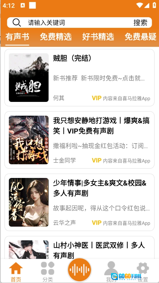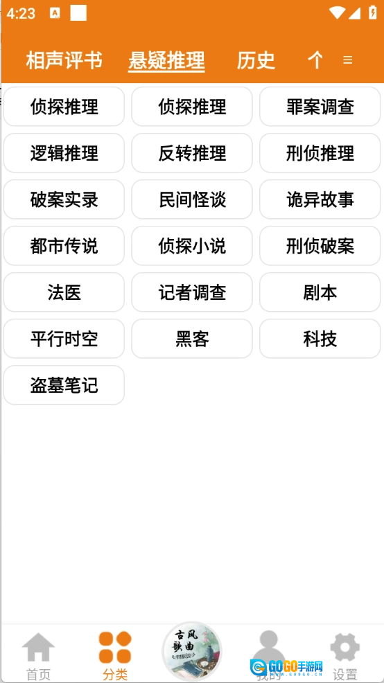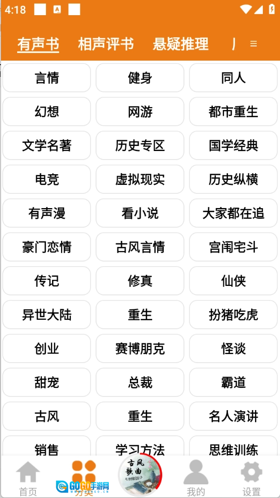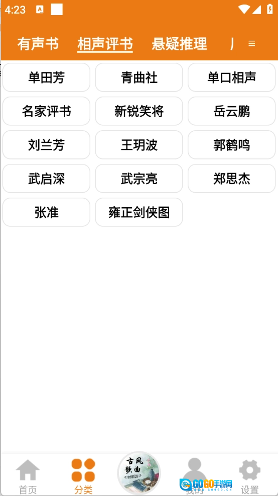 分类页面对资源进行了详细归类,涵盖有声书、相声评书等类别。