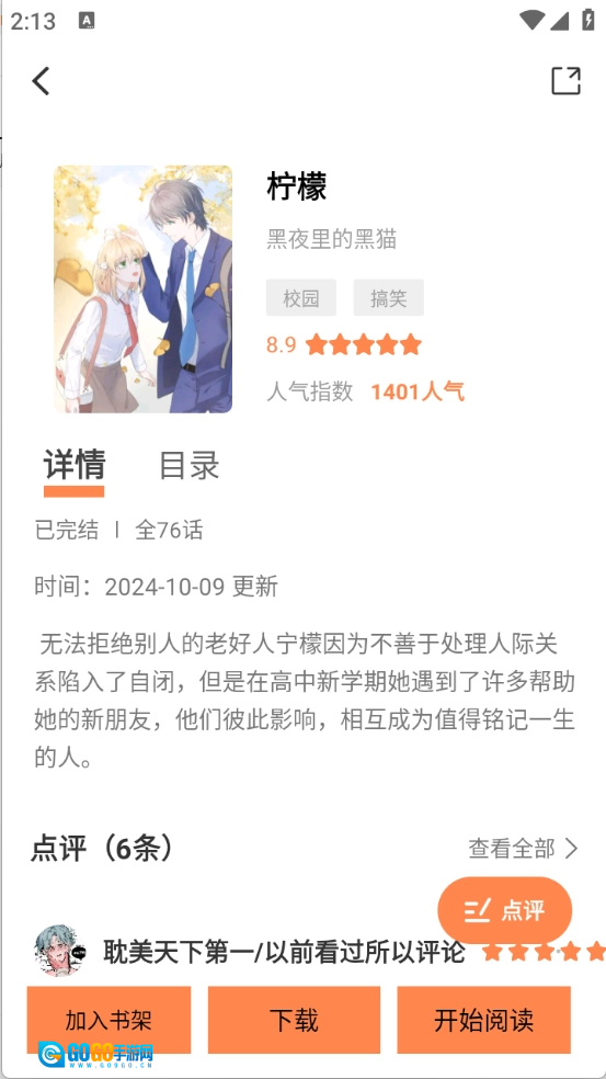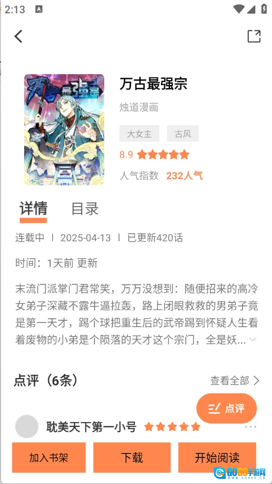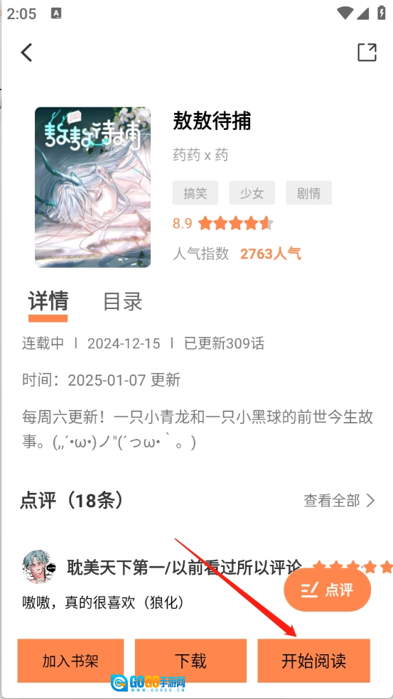 用户点开需要的漫画资源以后,点击“开始阅读”。
