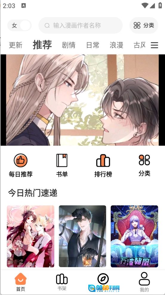 用户首先在3G游戏网大树园漫画板块,系统会根据你选择的性别为你进行精准推荐。