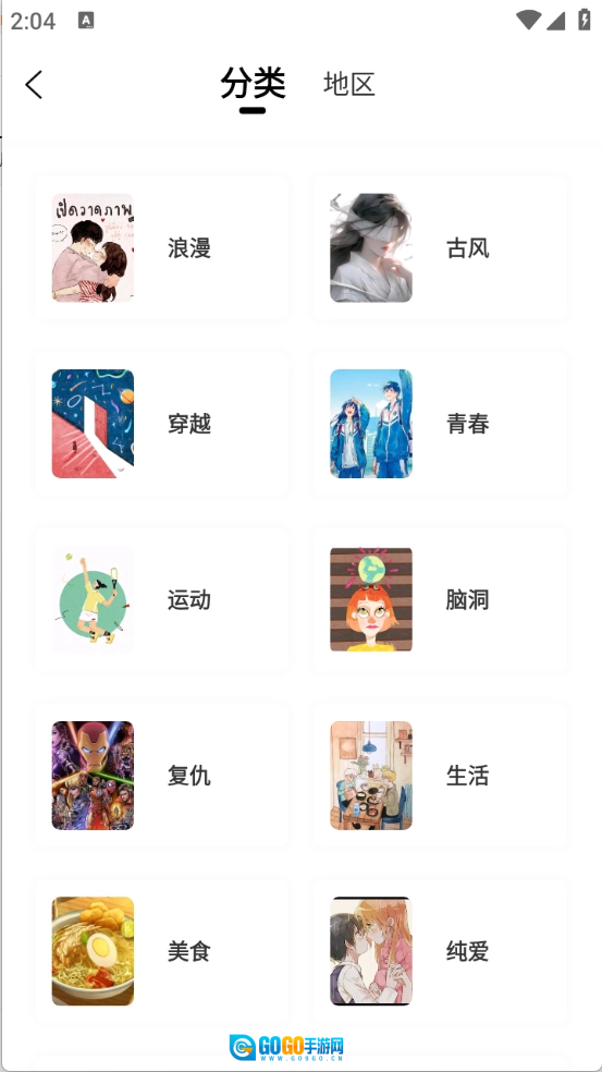 “分类”页面,依据题材类型对漫画展开了细致的分类整理。