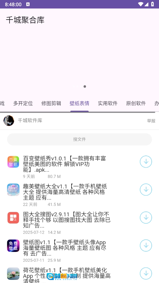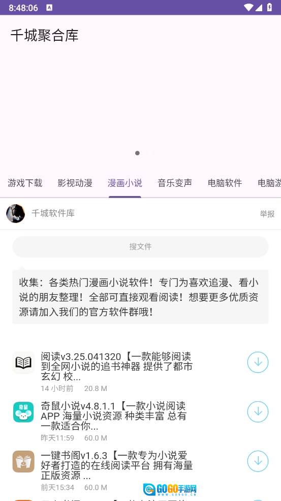 千城聚合库,汇集了免费实用的软件库资源,涵盖学习资料、热门影视、小说漫画、办公工具、游戏辅助等各类内容,资源更新迅速。界面简洁,无需注册登录,打开即可直接使用,此外,还有大量有趣的安卓游戏和电脑游戏可供挑选。