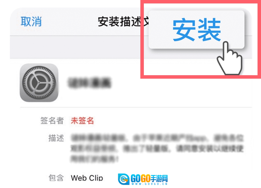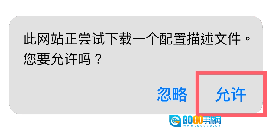 请允许安装来自未知来源的应用,点击“允许”按钮以安装所需的描述文件。