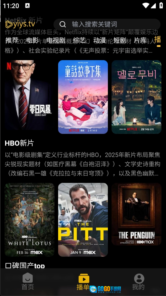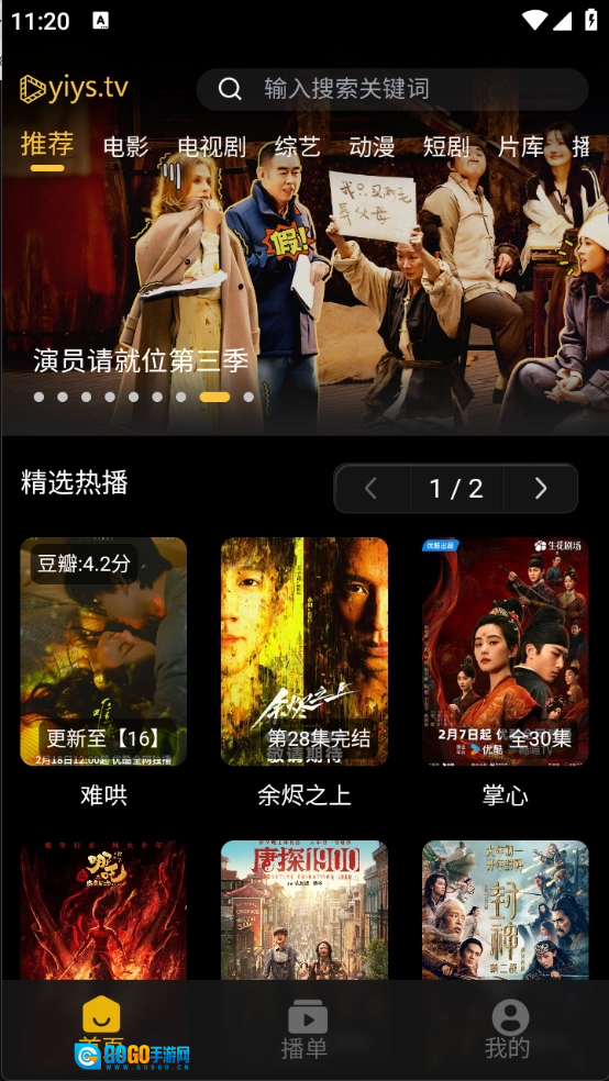进入首页后,顶部栏里有不少影视资源,涵盖了电视剧、电影和综艺等类型。