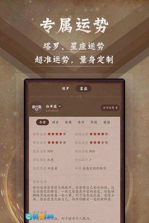 是解密星座运势塔罗牌占卜大师,涵盖爱情、事业、财富、运势等多个方向,随时随地获得解答。通过专业测试题快速定位自己的性格类型,更清晰认识自我。