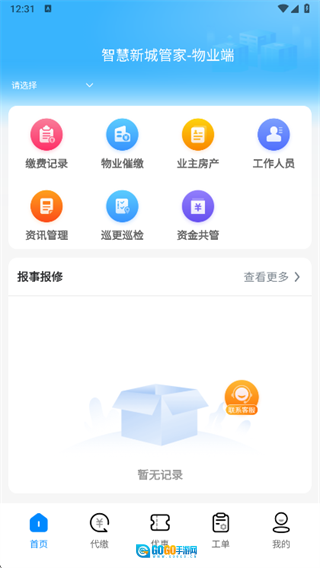 2、首页集成多项物业管理功能,满足日常办公需求。