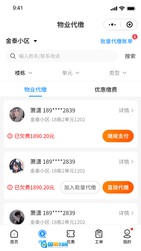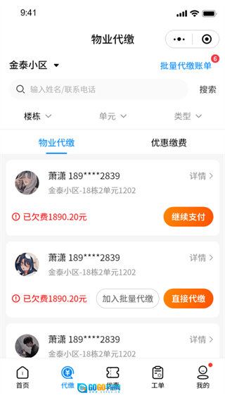 3、借助代缴板块,能够查询到每位业主的缴费明细以及历史记录。