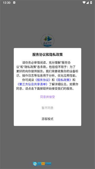 1、安装后首次使用需点击同意相关服务协议。