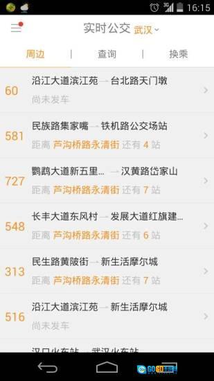 周边查询功能可自动定位周边站点,展示这些站点的所有公交线路及车辆到站距离,并按距离由近及远、线路编号从小到大的顺序排列。