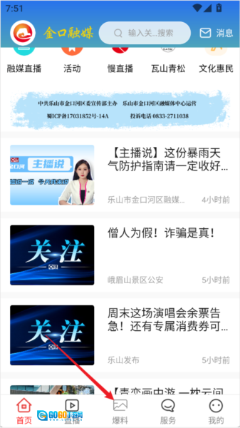 1、打开金口融媒App,点击底部导航栏里的【爆料】选项;