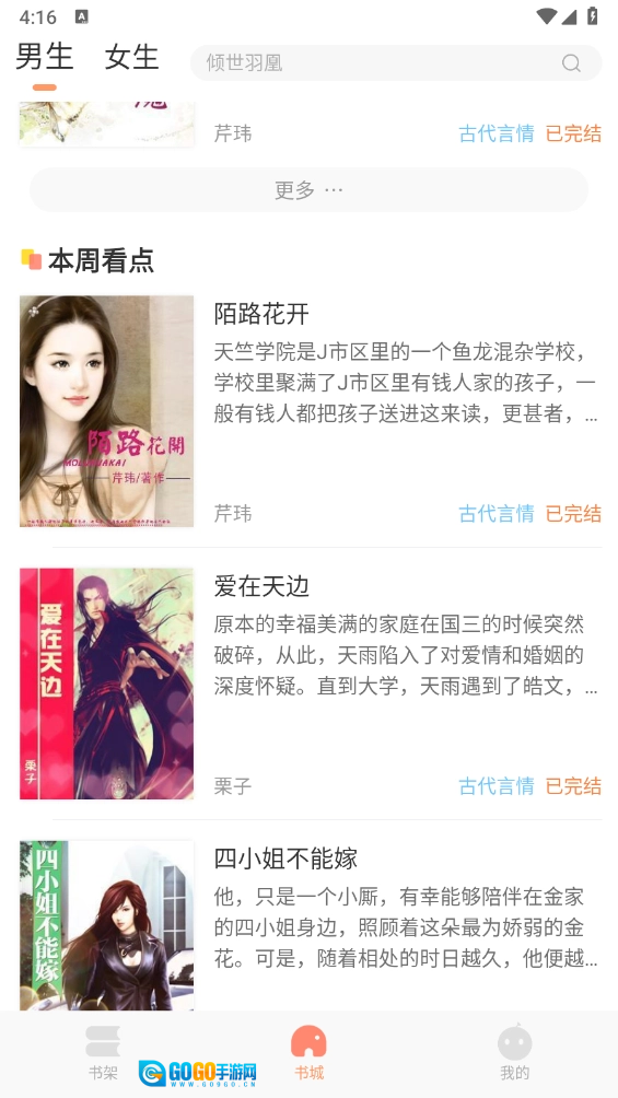 先在安装软件,一键进入书城,选择所需的听书资源。