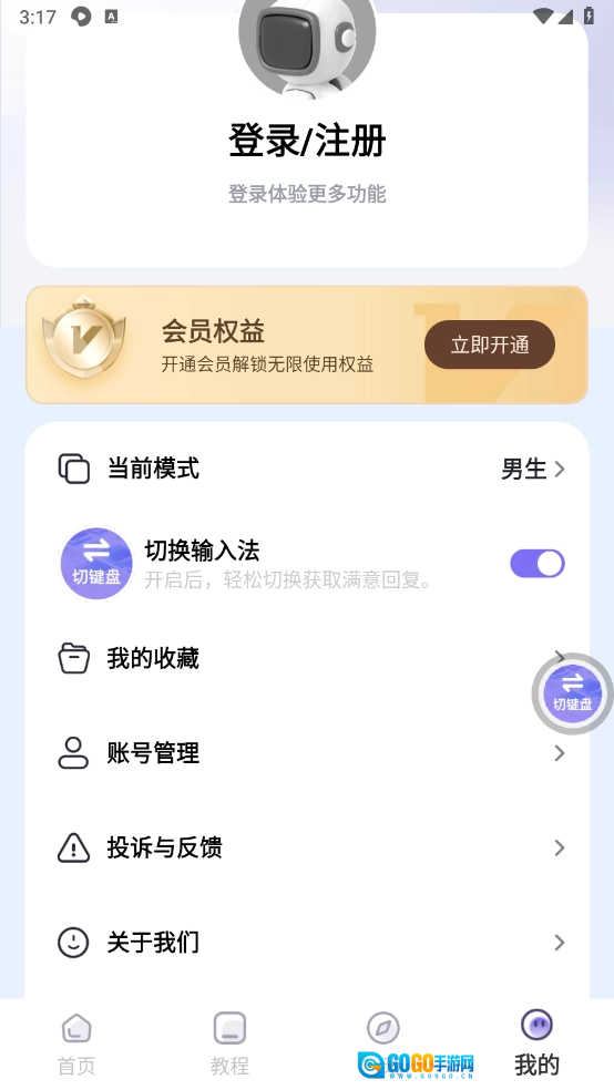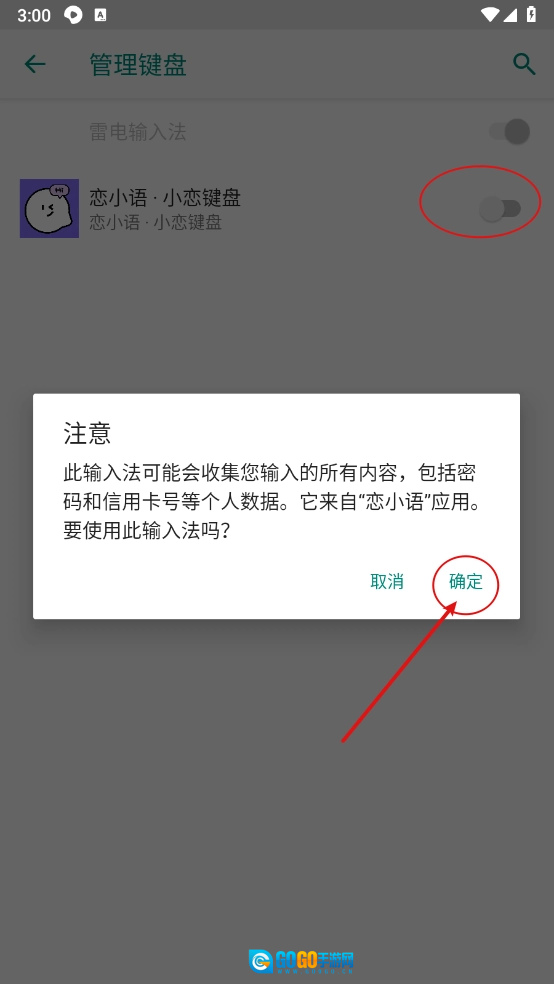如图所示,点击“悬浮球”,就能切换到恋小语键盘使用了。