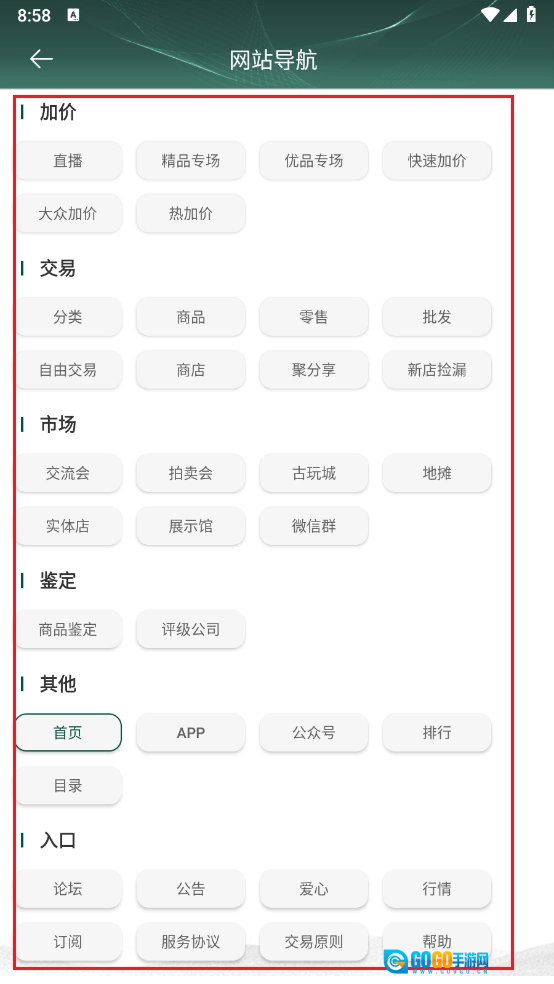 如图所示,设有交易、市场、鉴定等板块,按需点击就能直接进入使用。