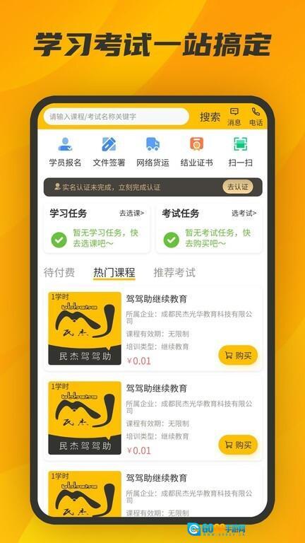 2、主要学习流程为排课、学习、练习、考试,完成后可获取结业证书,该证书真实有效,且得到当地运管部门的承认。