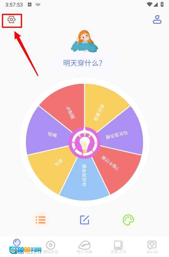 在主页点击目录图标进入,也可以通过选择各类问题,用转盘来决定最终的选择。