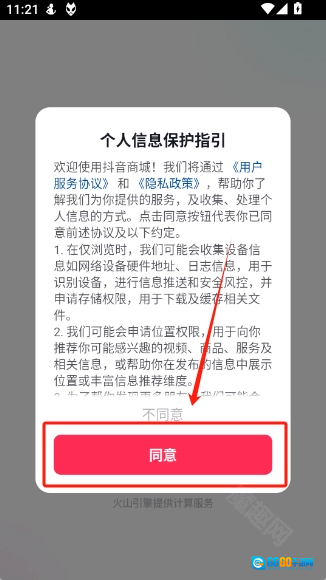 1、并打开抖音商城,点击“同意”