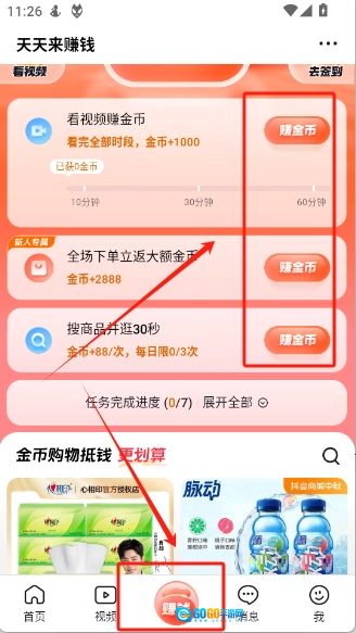 6、“赚钱”模块里设有不少赚钱任务,大家只要依照要求完成,就能获取丰厚的金币。