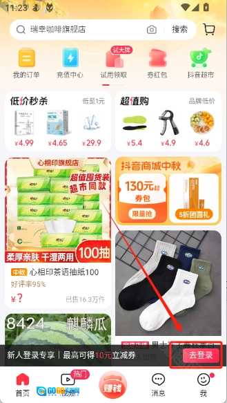 3、点击“去登录”登录你的抖音商城账号