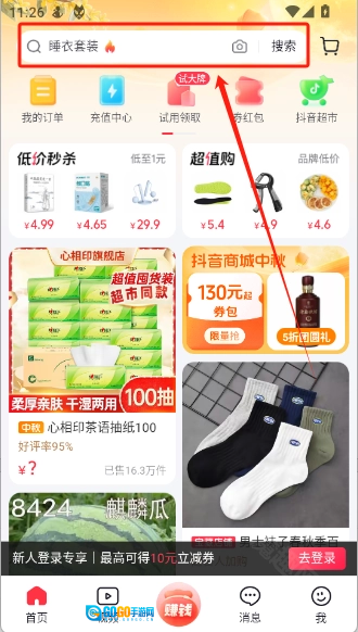 7、在首页顶部的“搜索框”中输入您想查找的商品,点击“搜索”按钮就能找到您想要的商品。