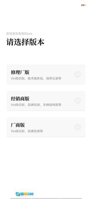 1、首先打开软件,完成注册并登录,接着依据自身实际情况,从修理厂版、经销商版、厂商版这三个版本中选择一个,这里以修理厂版为例进行说明。
