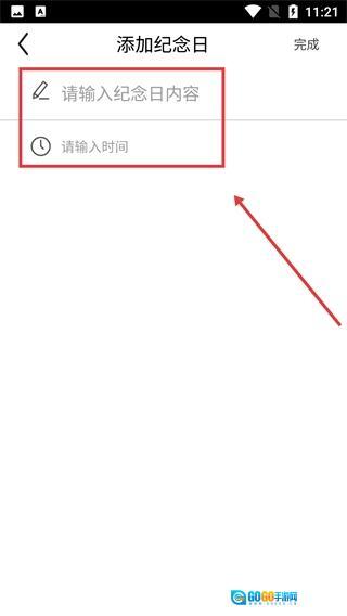 3、在添加纪念日的页面中,准确填写【纪念日内容】【纪念日时间】等关键信息。