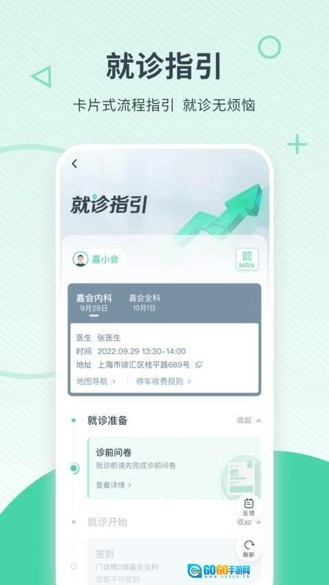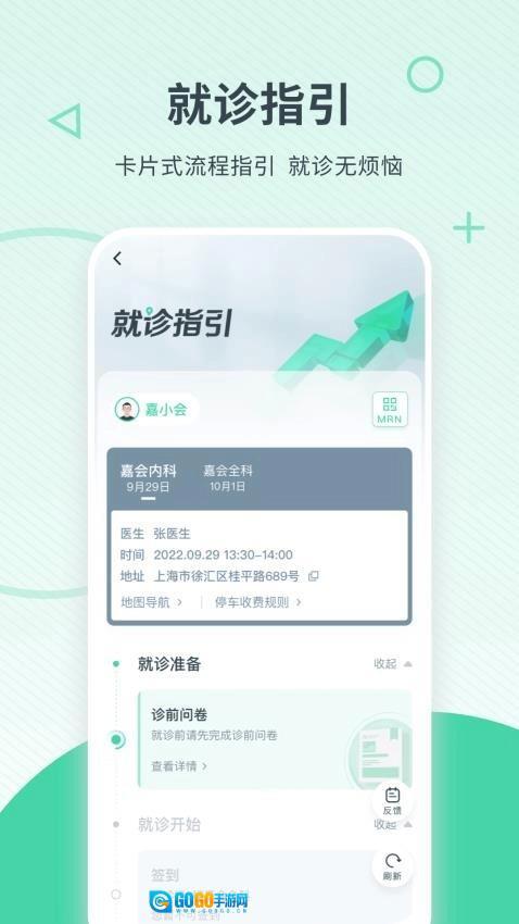 【就诊指引】:为用户提供就诊指引服务,采用卡片式任务设计,流程清晰明了,操作简单便捷。