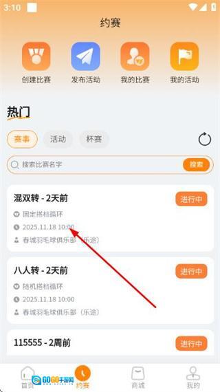 简化赛事报名流程,用户可直接通过平台快速报名心仪赛事,平台还提供赛事时间提醒功能;此外,用户也能自主发起赛事,自行设置规则与报名条件,方便组织身边球友参与活动。