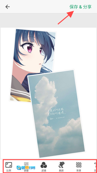 4、此外还能添加滤镜、贴纸之类的元素,创作完成后可以保存作品,也能将其分享出去。
