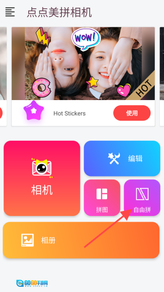 2、先开启相关权限,接着进入主界面,然后点击【自由拼】图标。