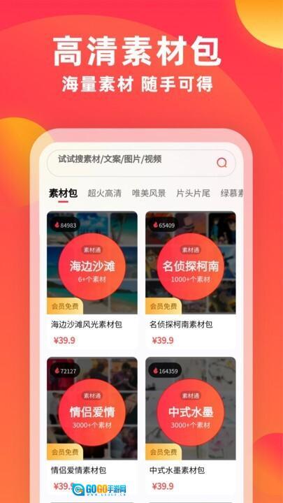每天都会更新高清素材包,涵盖美学系列、治愈系列、搞笑系列、经典转场、绿幕特效、美剧重连系列等多种类型。这些高清无水印的素材包含当下流行的内容,并且可以一键获取,能让您的视频变得更加精彩。