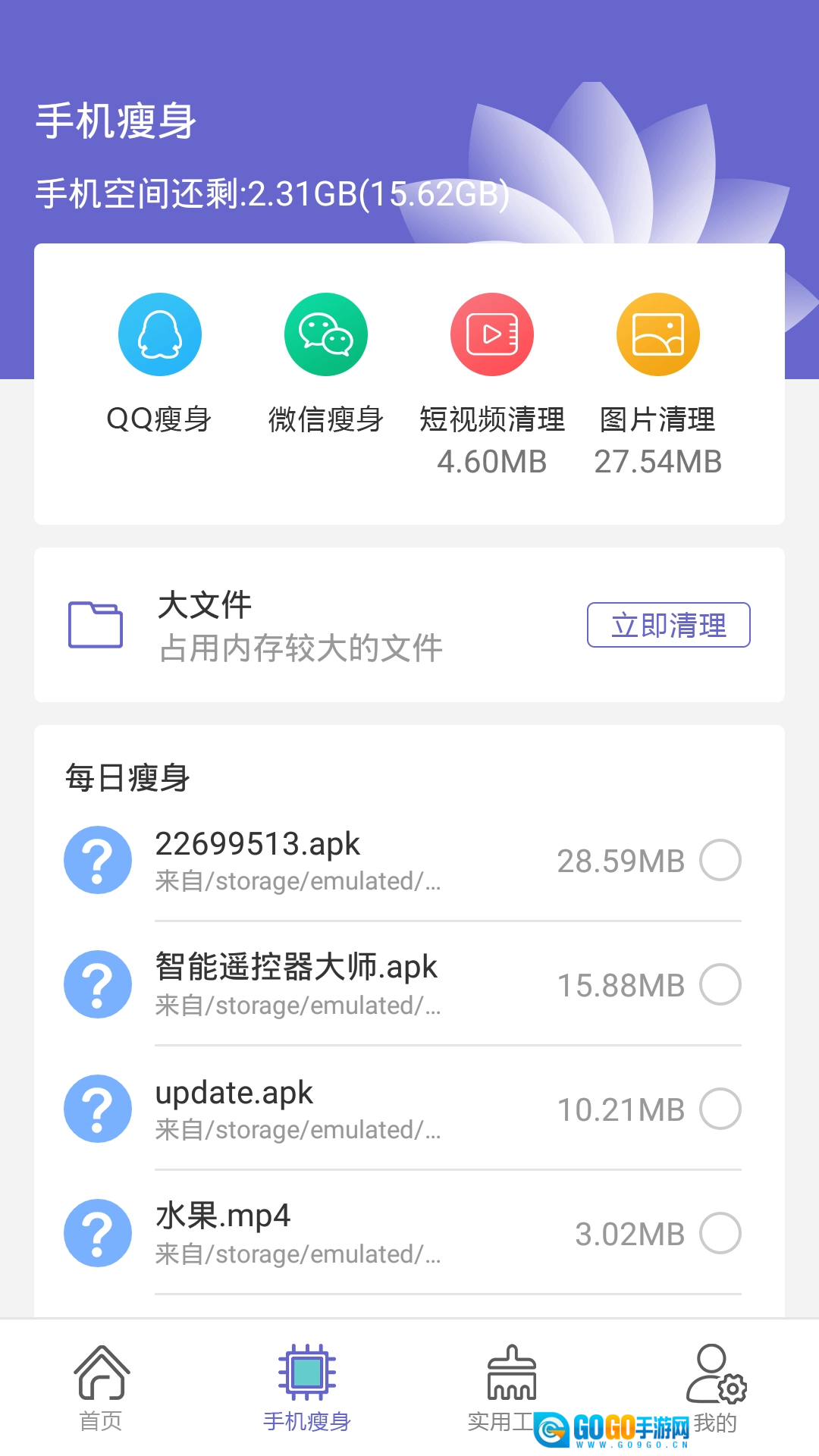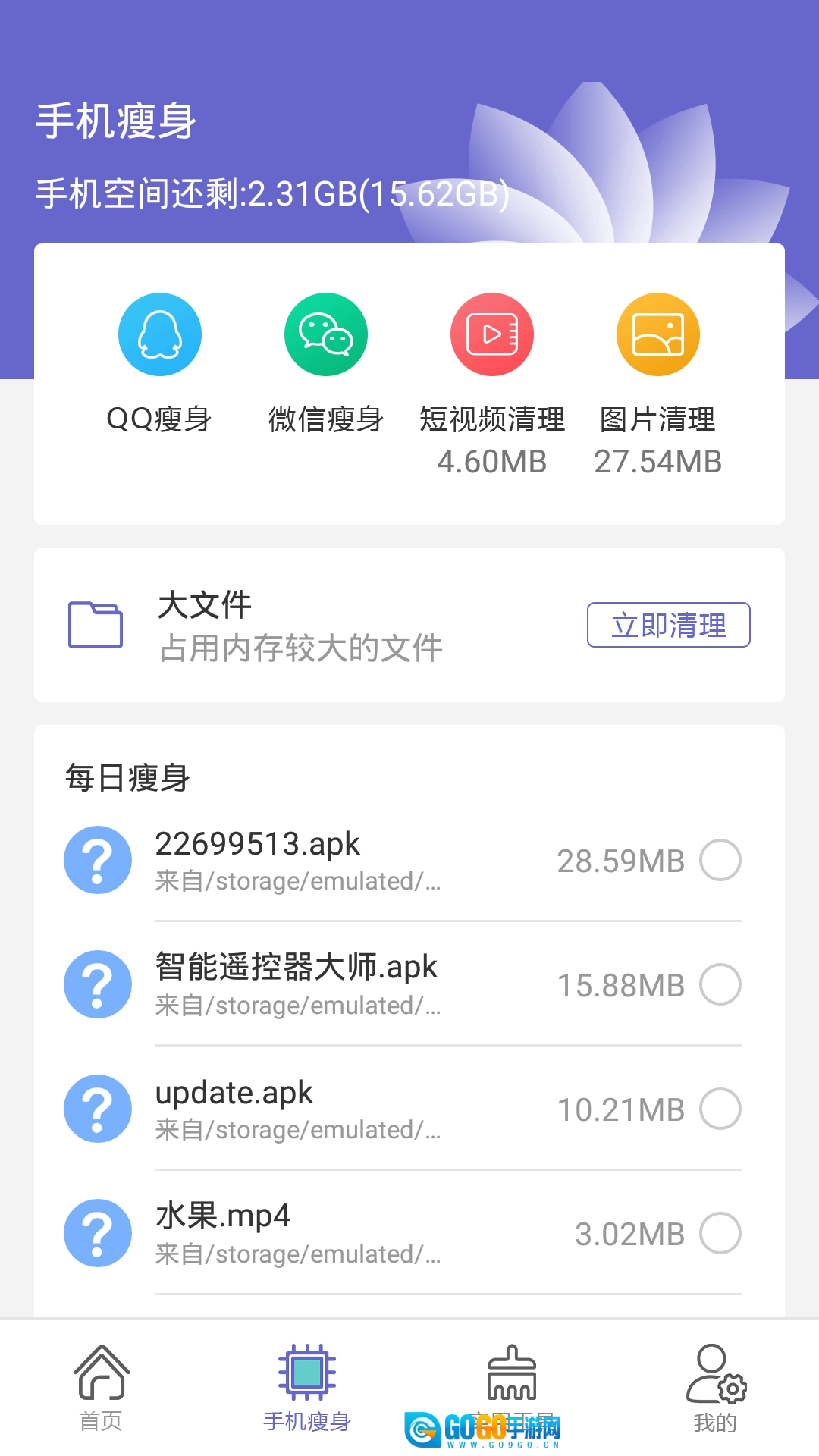 这款软件能轻松提升手机运行速度,并且可以智能清理各类不同类型的垃圾文件。