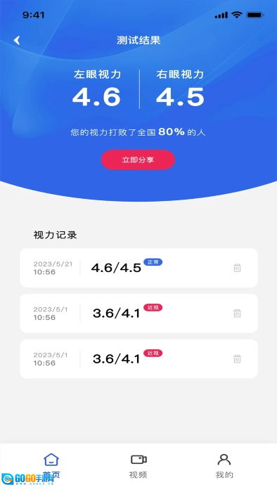 2)界面简洁直观、操作简单,能帮助用户轻松了解自身视力情况。