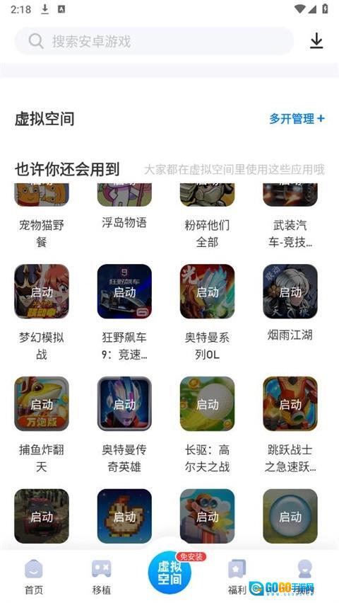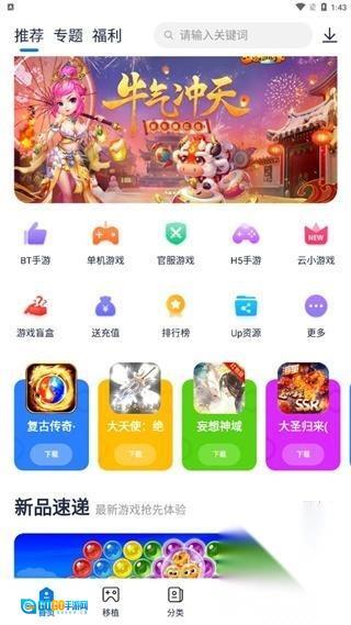 1、首先打开软件进入首页后,能看到多个不同类型的板块,还支持直接搜索想玩的内容,操作起来十分方便快捷。