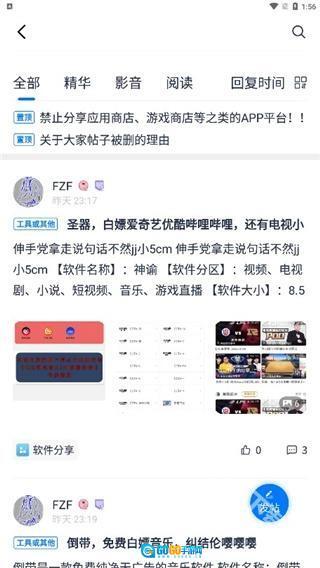 6、挑选你感兴趣的板块进入(我这里选择的是软件分享板块),能看到有网页在这个板块里分享影音、阅读等各类软件。