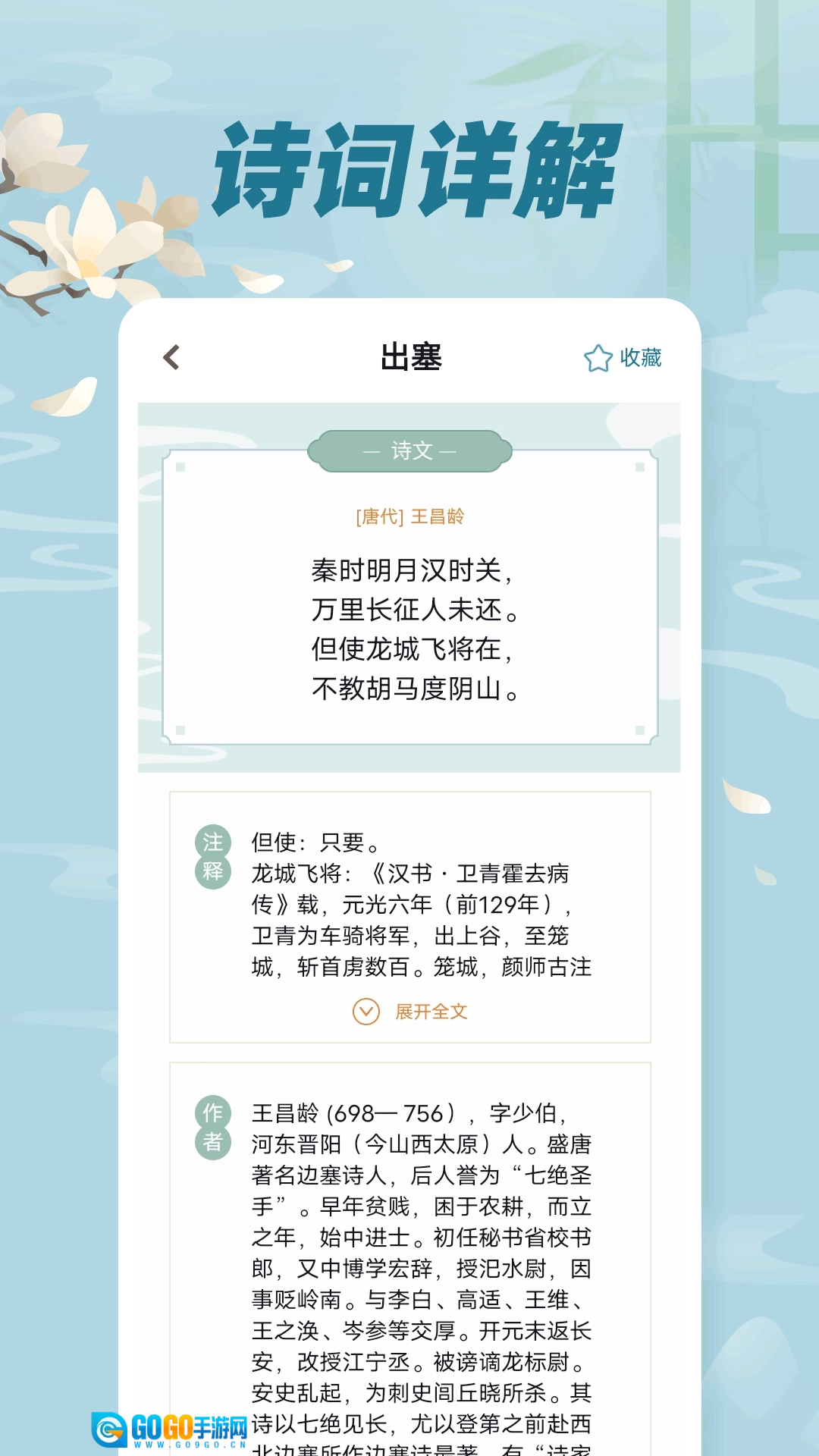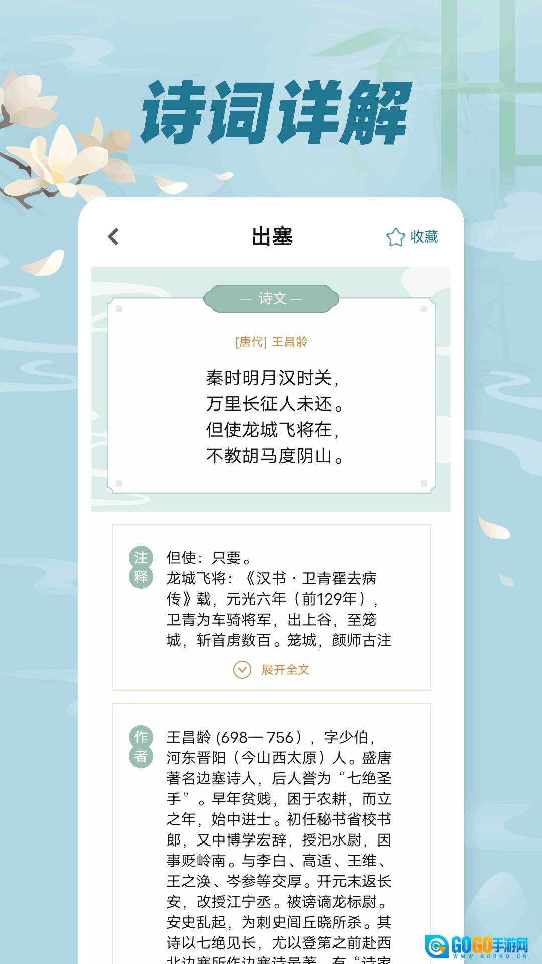 这款古诗词文软件收录了海量古诗词,内容全面覆盖,用户可随时在线进行学习。