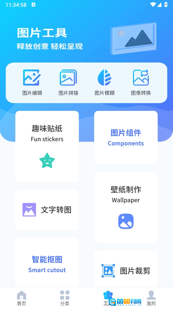 这款图片搜索神器不仅有着海量的图库资源,还能根据个人需求输入关键词进行搜图和识图;在工具板块里,还能实现图片编辑、拼接等功能,用起来特别方便。