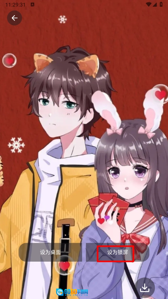4、打开进行壁纸页面,点击"设为锁屏"。