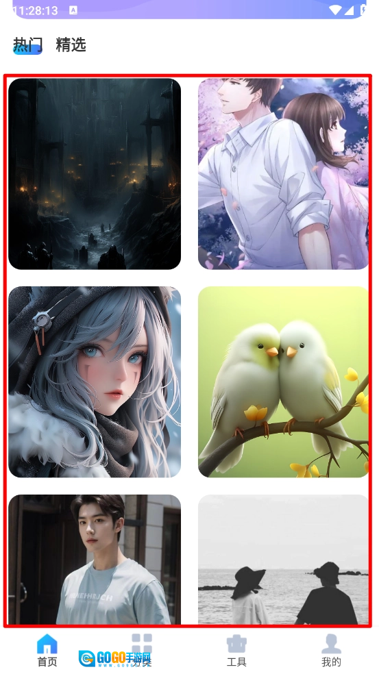 2、进入首页,如图,滑动即可选择喜欢的壁纸。