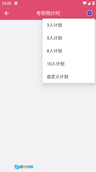 5、进入新增的倒计时页面后,点击右上角的“+”号,接着选择计划人数,可选的有3人计划、5人计划、8人计划、10人计划以及自定义计划等,例如选择3人计划。