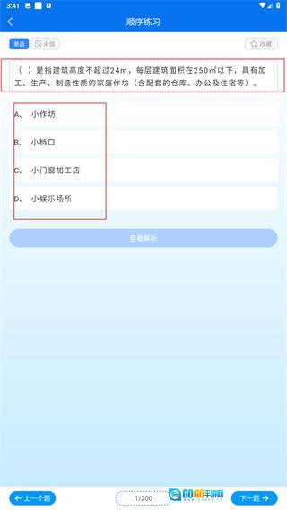 3、进入【顺序练习】的答题页面后,先仔细阅读题目内容,再从给出的选项里(例如本题的选项)挑选出对应的答案,以此完成单个题目的作答流程。