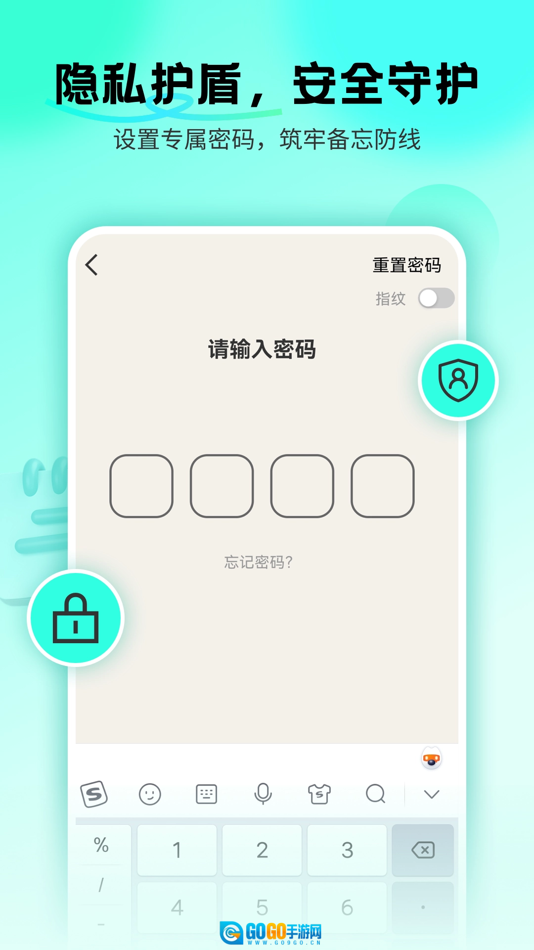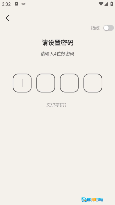 首次使用时会直接跳转至密码设置界面,你可以在此处输入4位数字密码。
