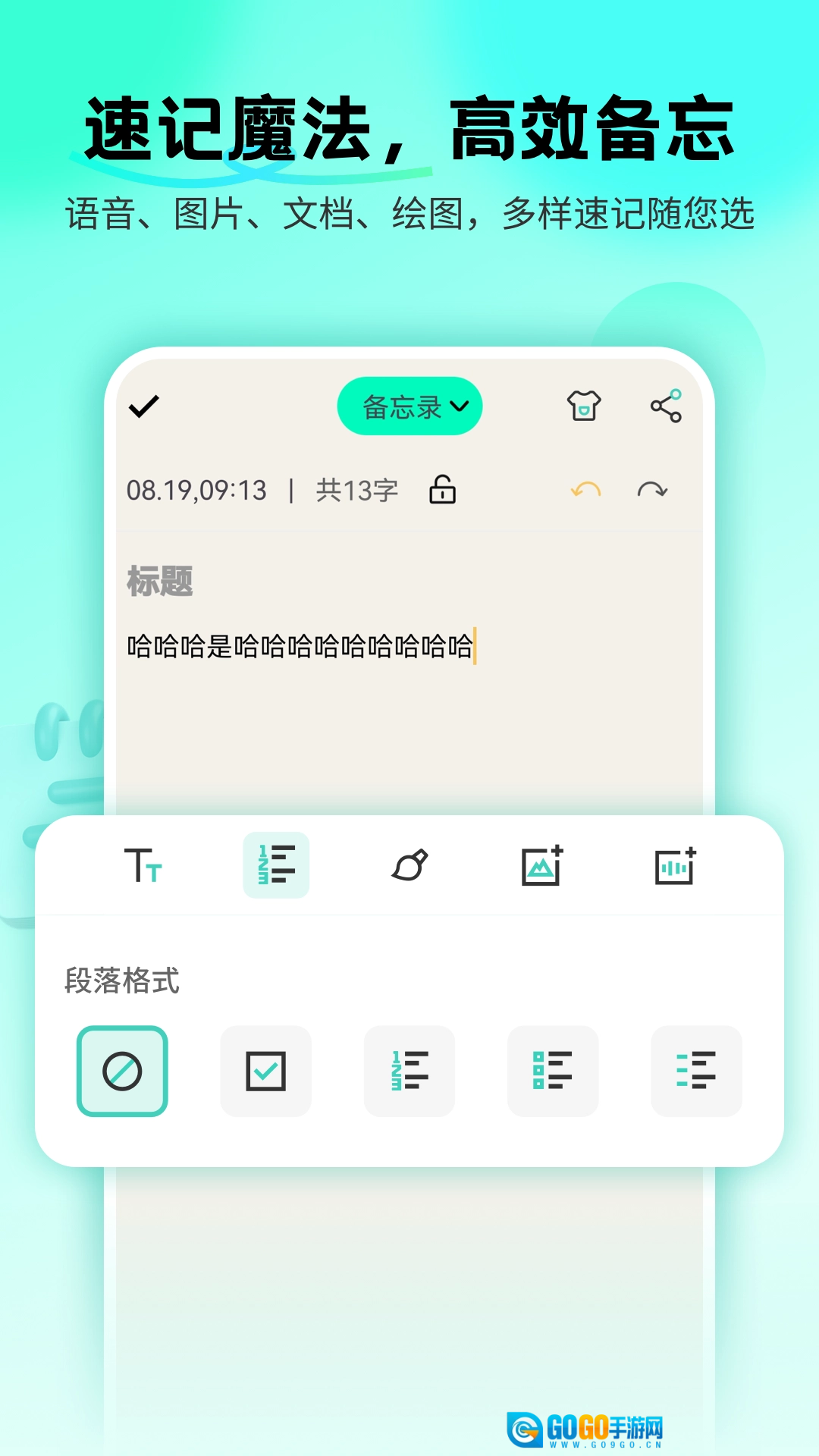 接着你能在备忘录内输入你要记住的标题和内容。