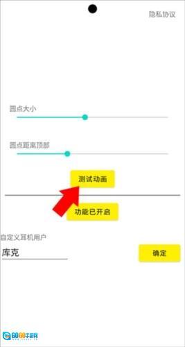 4、功能开启后,点击“测试动画”按钮查看效果。