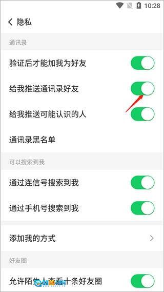 3、关闭给我推送通讯录好友功能即可