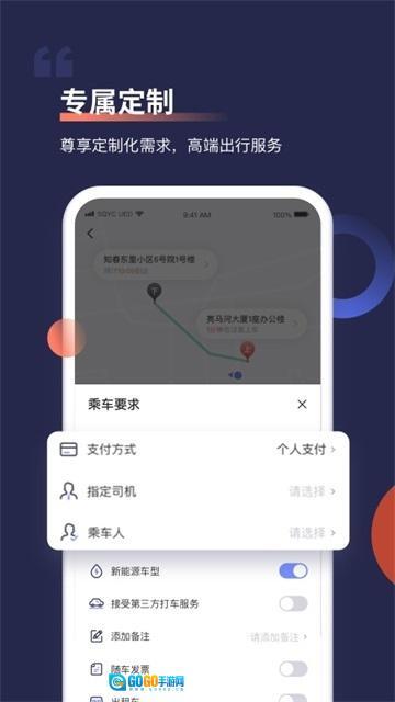 1、服务类型:即时用车、预约用车、接送机服务、代他人叫车