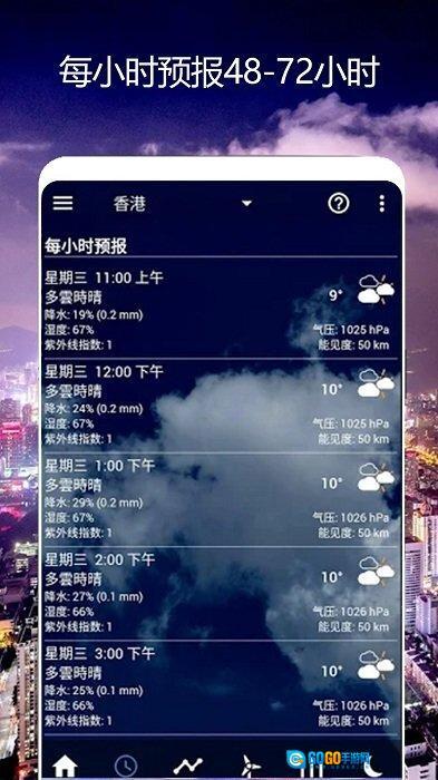 1、逐时预报提供24小时天气变化情况,助力提前预防当天温差,便于实时掌握天气动态信息。